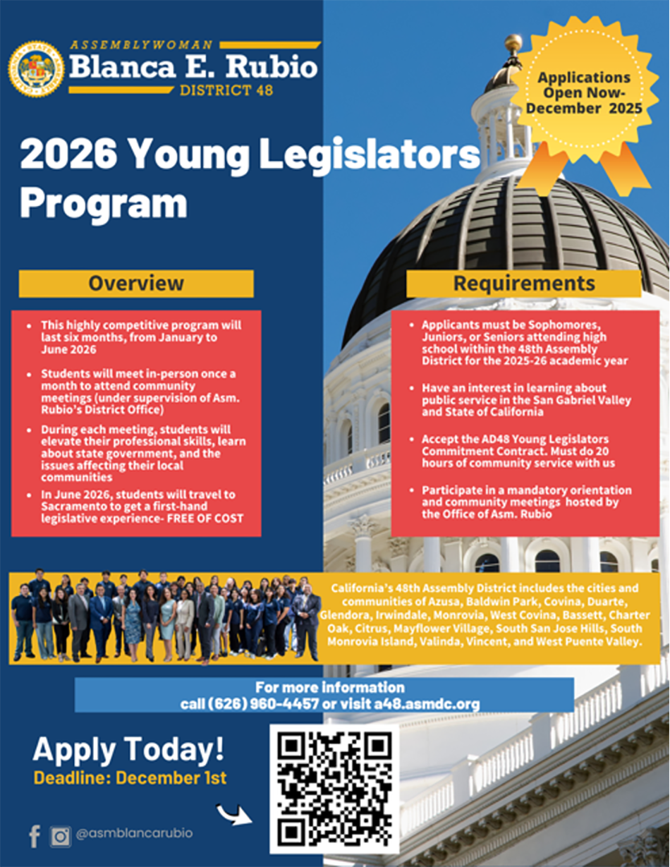 It is my pleasure to represent the 48th Assembly District in the California State Legislature. This term serves as my 9th year as a Legislator in the California State Assembly. It is an honor to serve over 498,000 residents in our district and collaborate with nine cities in the San Gabriel Valley. I am excited to share my September 2025 Newsletter and ensure our communities stay up-to-date with state-related matters.